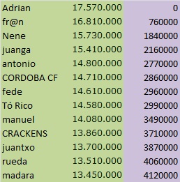 | 1º | manuel | 1.283 | 72 | 11 |